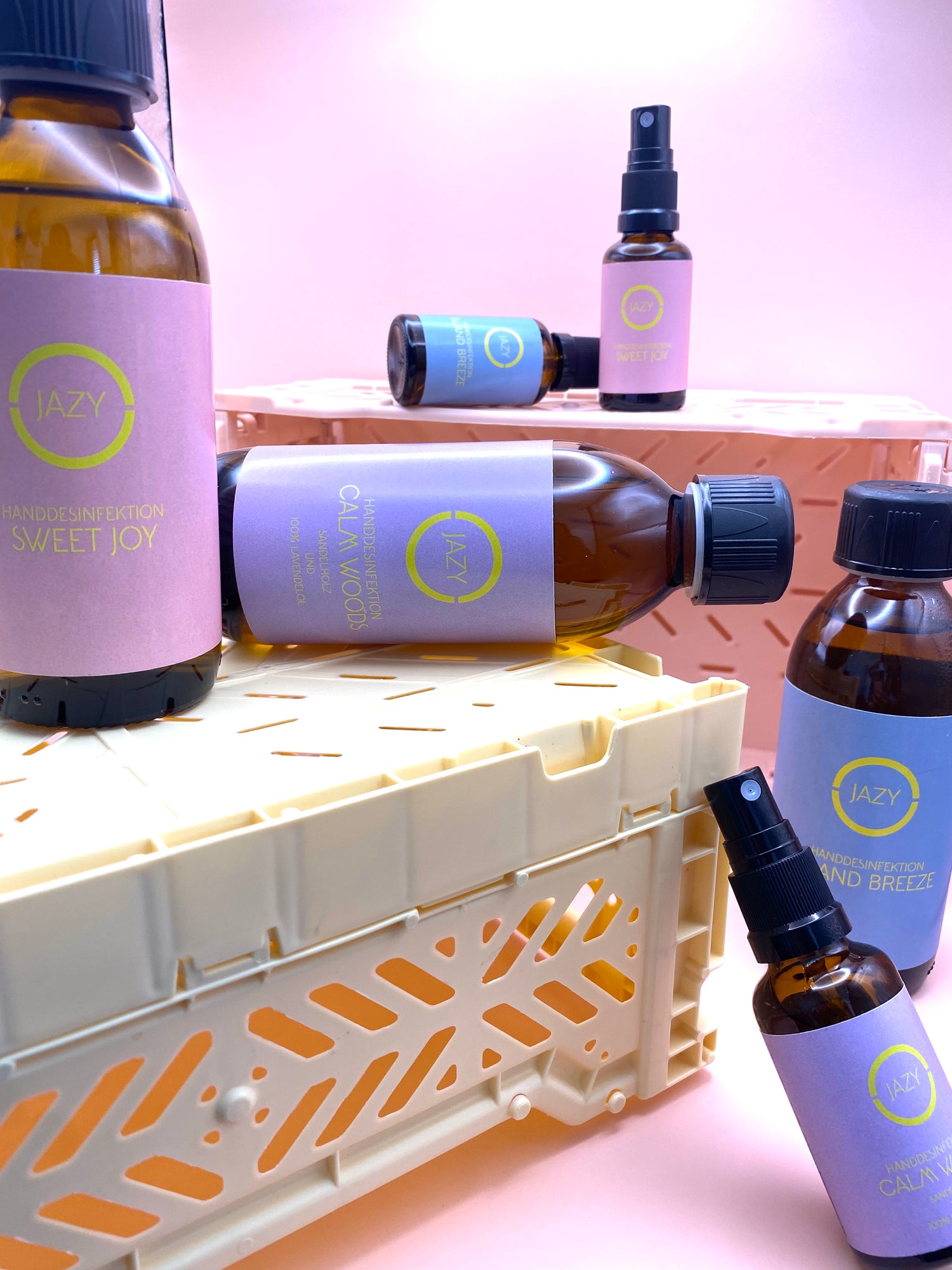 Unsere Handdesinfektionsmittel sind ideale Begleiter für unterwegs und kompatibel mit unserem JAZY...